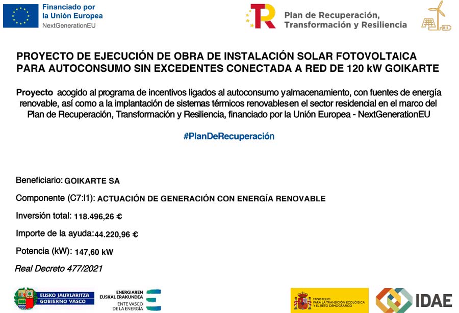 GOIKARTE, S.A.Ugaldeguren, 1 - Parcela 5 - III - C | 48170 ZAMUDIO (Vizcaya)T. 944 540 300 | F. 944 540 225
